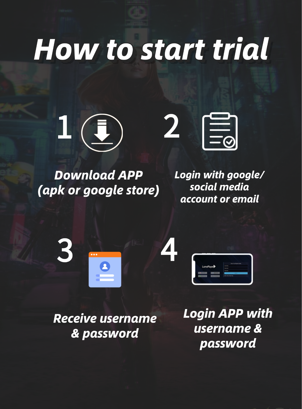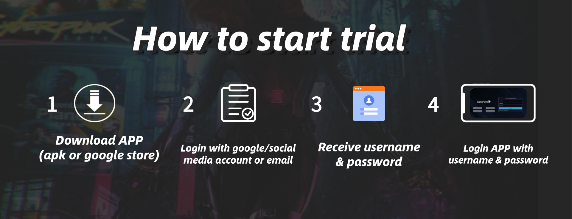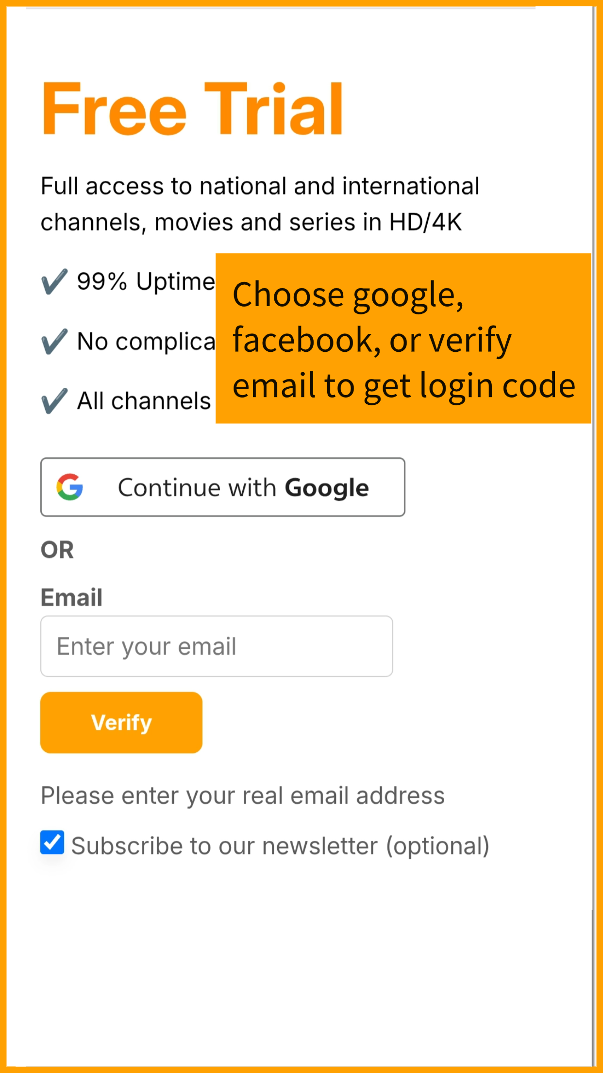 - 3 Claim and get your free trial username, password and URL, enter and start watching. See below instruction video.