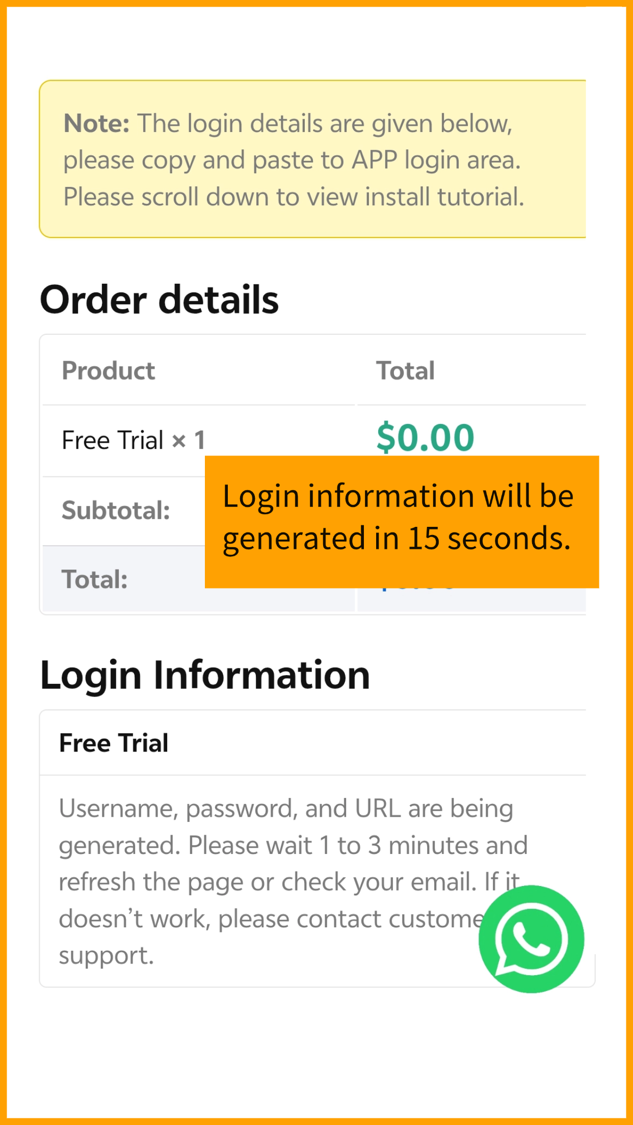 4. Wait seconds for login details to generate. โ