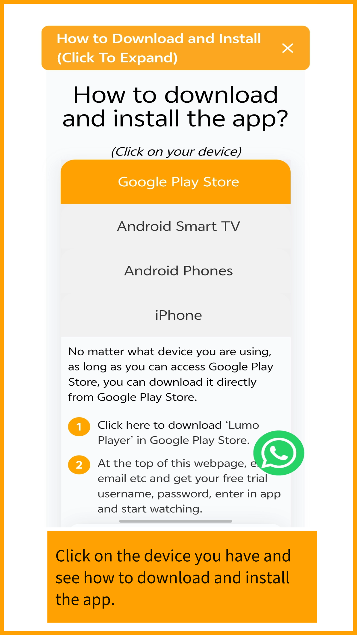 6. Click on your device and see tutorials how to download and install App.โ