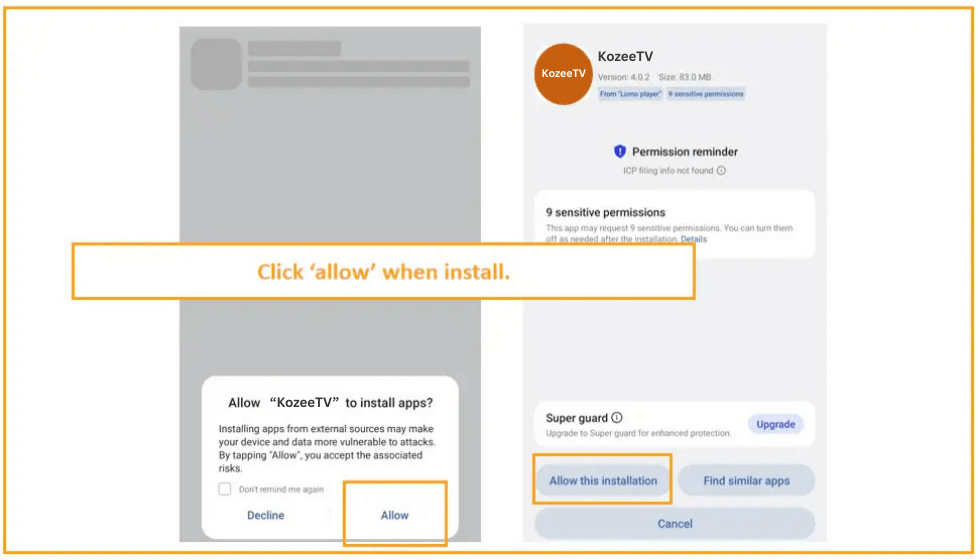 2. Allow your device to install app.