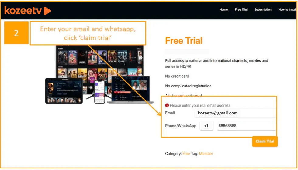 - 3 Claim and get your free trial username, password and URL, enter and start watching. See below instruction video.