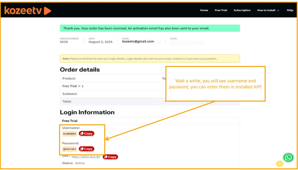 - 6 Claim and get your free trial username and password and enter to app, then enjoy your free trial.